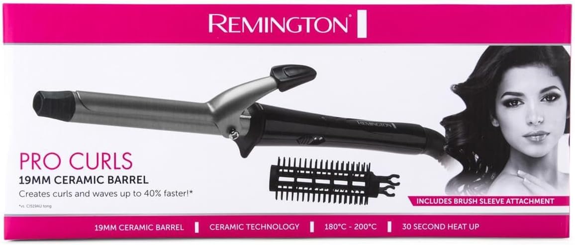 The Remington Pro Curls CI1019AU is a classic ceramic curling iron designed to create defined curls, soft waves, and voluminous hairstyles quickly and easily. It uses a 19mm barrel size, which is ideal for tighter curls and long-lasting bounce, making it a popular everyday styling tool.