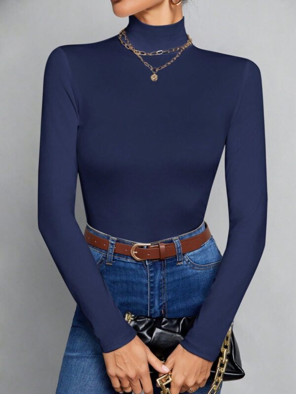 Navy Blue Turtle Neck for Women – Winter Slim Fit High Neck Top