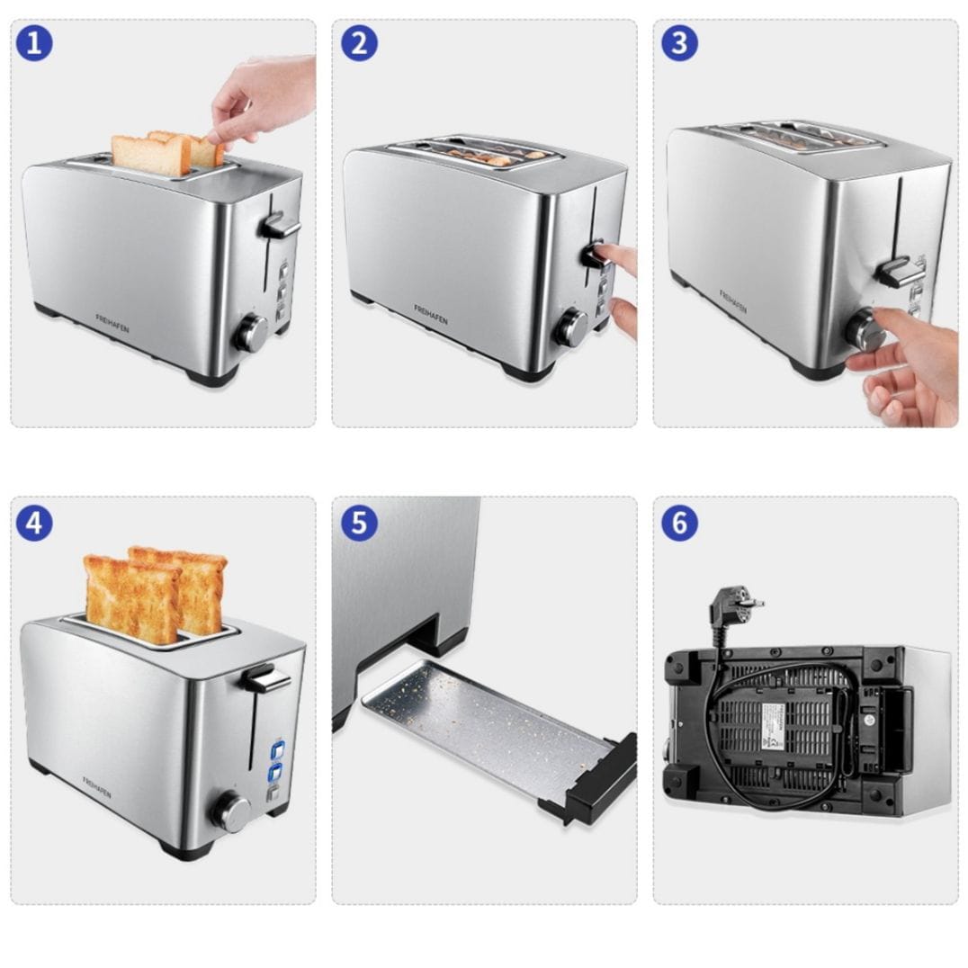 Perfect for busy families, breakfast enthusiasts, or anyone looking to elevate their toasting experience. The Freihafen Premium Toaster is ideal for making quick snacks, preparing breakfast sandwiches, or simply enjoying a warm slice of toast with your favorite toppings. Upgrade your kitchen with the Freihafen Premium Toaster and toast your way to deliciousness!