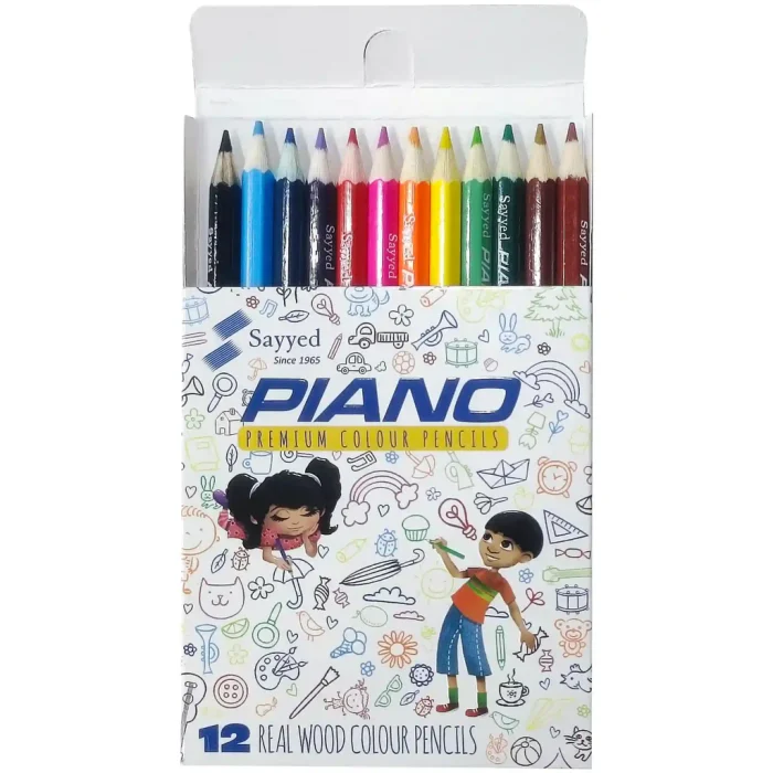 Piano 12 Colour Premium Full Card Premium-quality pencil ideal for colouring, blending and shading Easy to sharp Bright and sharp colours High and medium-quality colour lead Incredibly vibrant colours 100% Real wood Non-toxic.